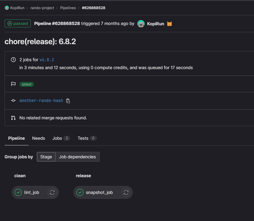 The snapshot job will generate and populate the Releases under the Deployments section of the GitLab sidebar navigation pane which will look something like this: