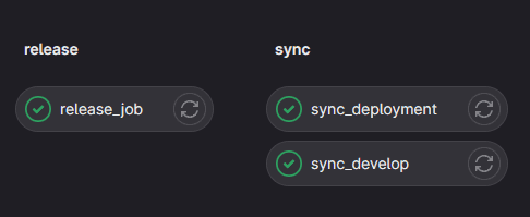 4. Define a release_job that only runs on the master branch and when the commit message starts with Merge branch, the RELEASE_TRIGGER_BRANCH and RELEASE_TARGET_BRANCH variables makes sure that the direction of merge is from trigger to the target
